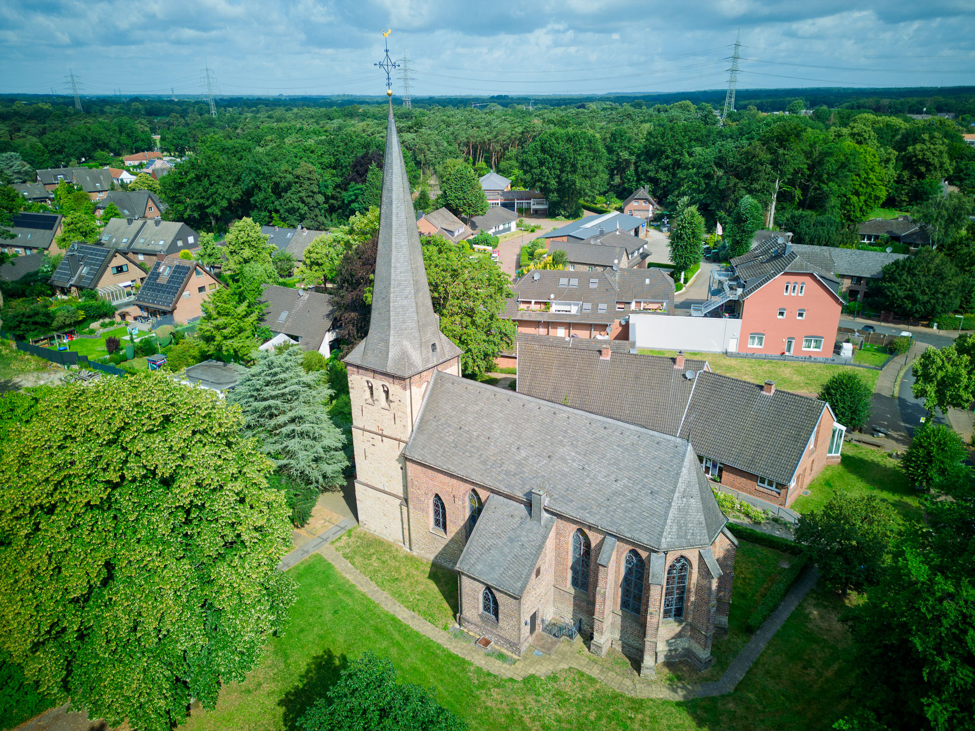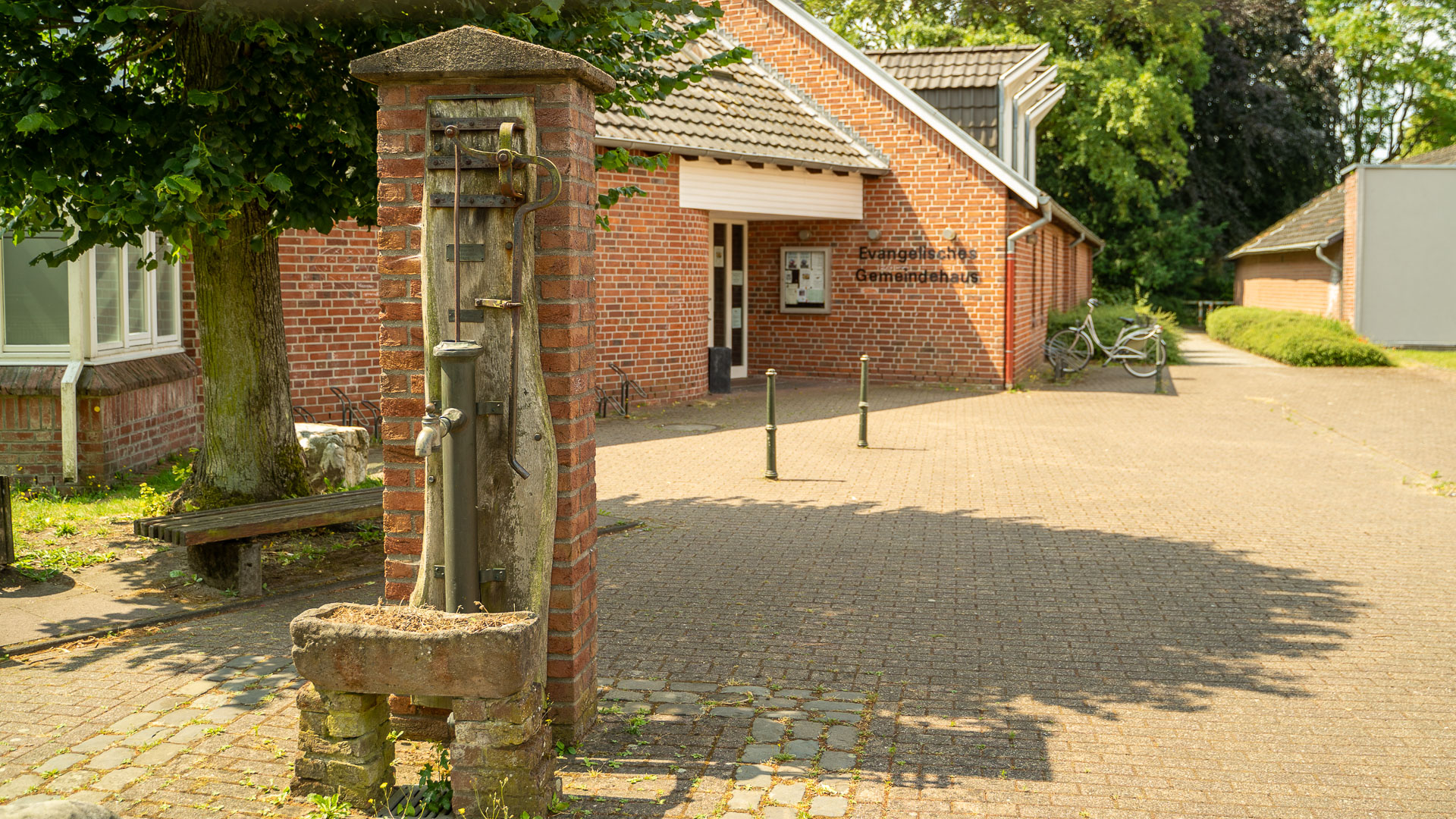 Kirche und dahinter liegend das Gemeindehaus