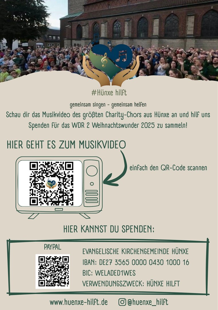 #Hünxe hilft ist ein musikalisches Projekt, bei dem alle Vereine und Gruppen der Gemeinde Hünxe teilnehmen konnten.